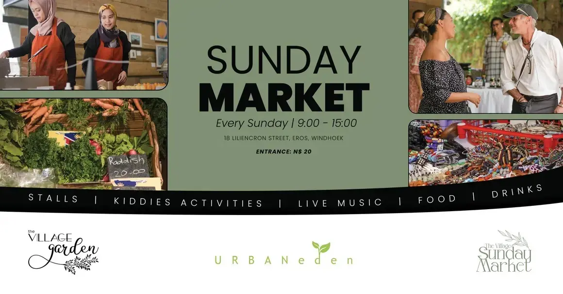 Join us every Sunday from 9 am to 3 pm at The Village Garden, located at 18 Liliencron Street, Eros, Windhoek.